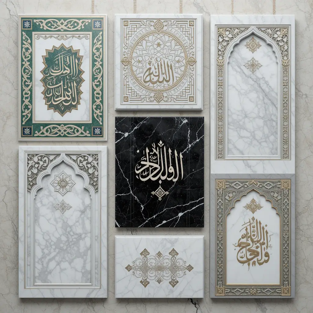 Islamic mosaic and calligraphy in marble and granite — timeless art in stone.