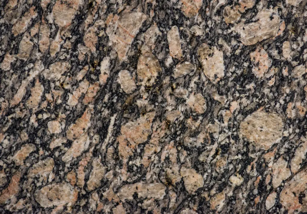 Classic brown granite with circular patterns and dark accents; popular for kitchen tops and high-traffic flooring.