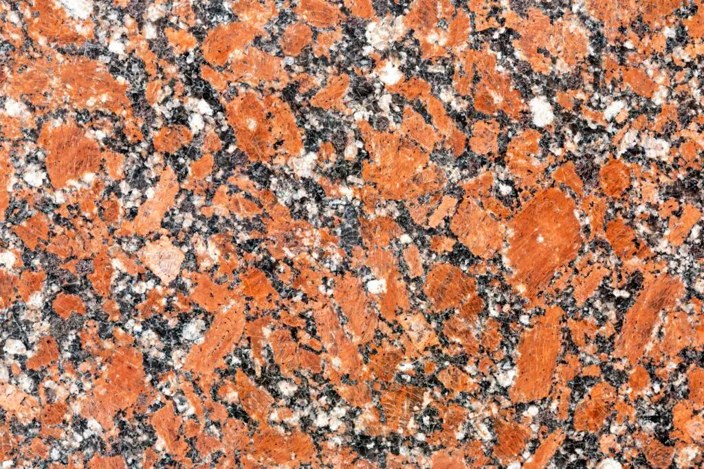 A vibrant red granite with intricate black and grey flecks; ideal for bold, premium countertops and exterior facades.